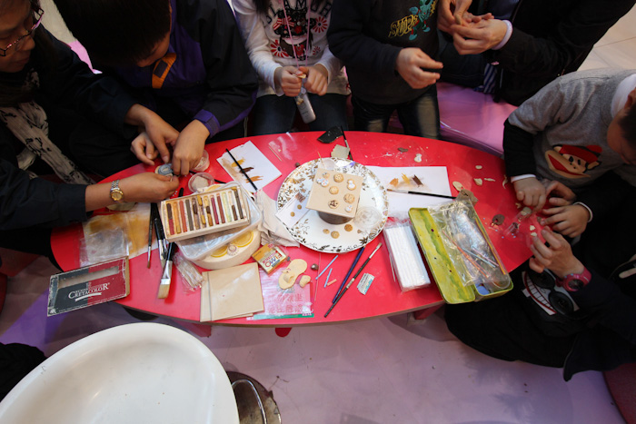 The first one was with 4 years old kids. That wasn't fun at all, because I didn't expect them to be so young and of course the workshop was too hard so the mother ended up taking the hands of their children making everything for them, so the kids got bored.