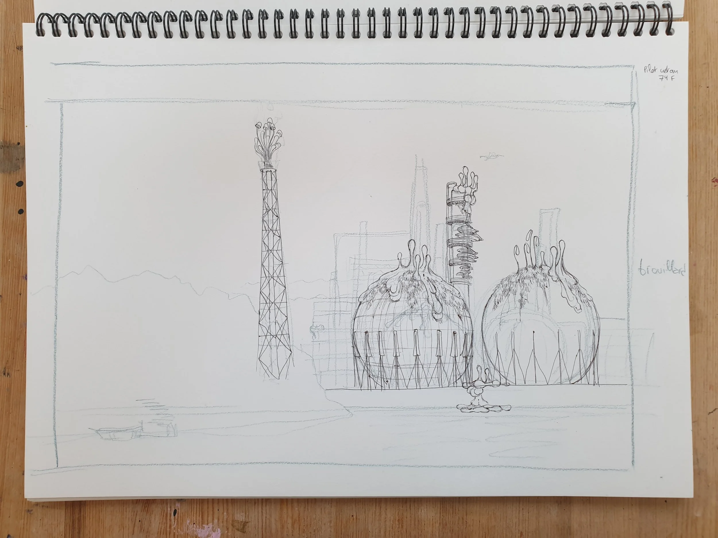 I added herons and sea gulls in the sky, both very present in Busan / Ulsan. But also bigger insects on the two round industrial… things.
